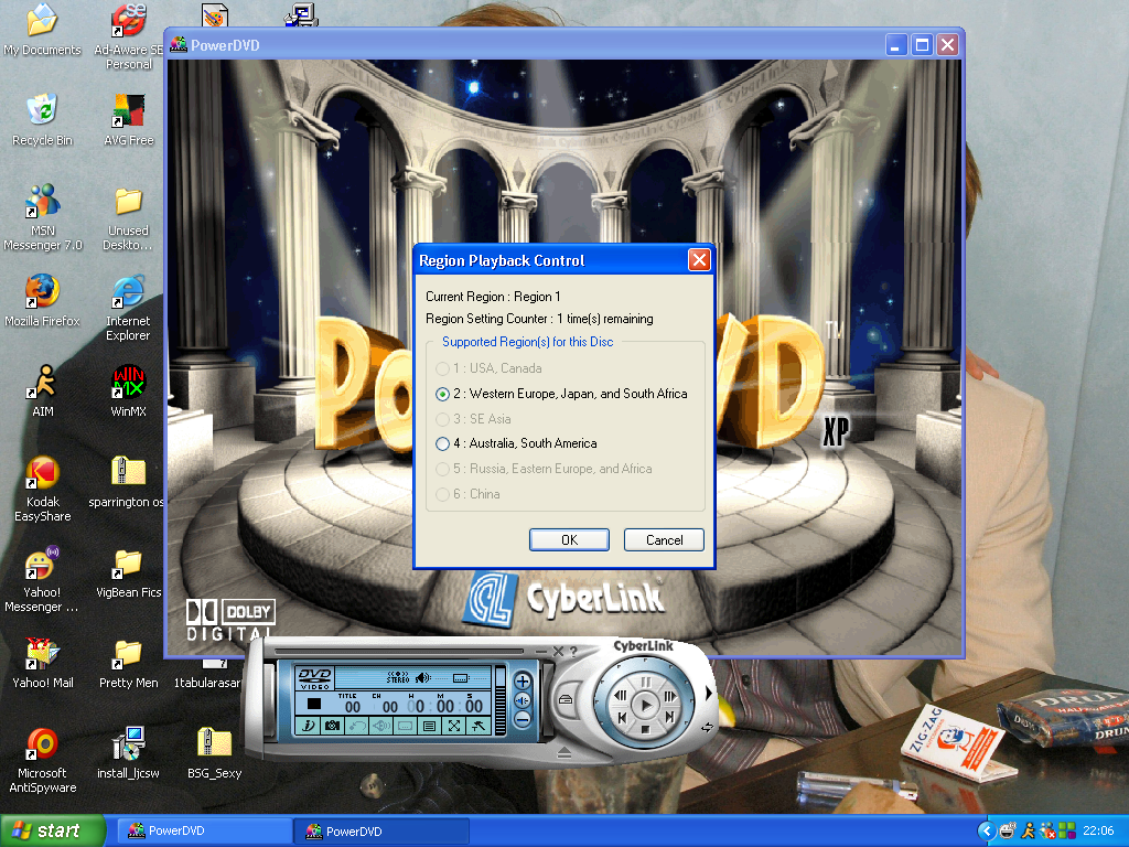 When I put the BSG DVD in my drive I get this message and then when I select Region 2 and click ok I get this message